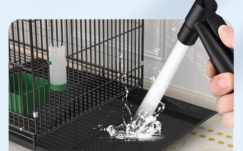 Product information: Material: Metal Applicable object: Bird Specification: Black double layers [51*34*74]-(13-piece set with bird's nest swing ladder) Category: Birdcage